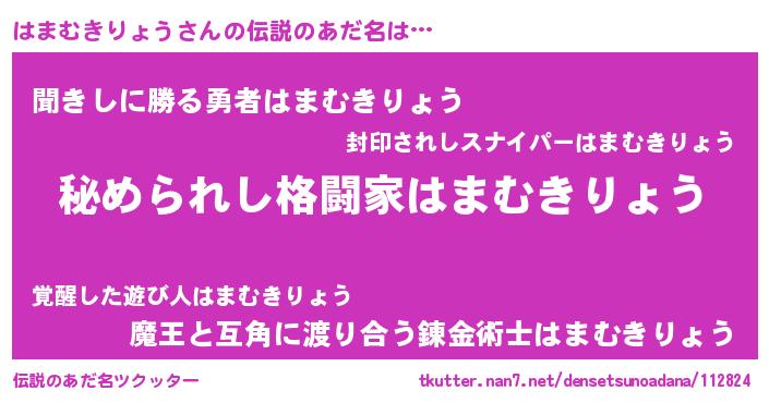 | 女子向けラノベタイトル風あだ名 | 『はまむきりょうアンティーク』 |