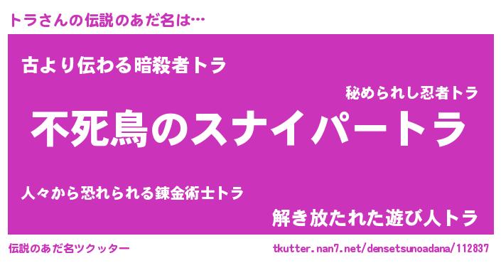 | 意味不明あだ名 | 『ペロリントラ』『永久保存トラ』 |