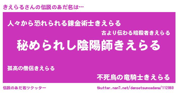 | ヒーロー風カッコイイあだ名 | 『ウルトラ戦士キエラル』『仮面キエダー』 |