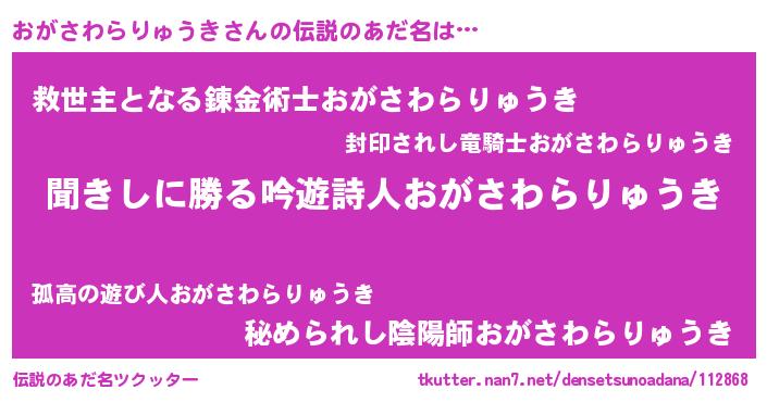 | 意味不明あだ名 | 『永久保存おがさわらりゅうき』 |