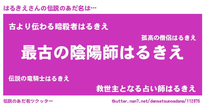 | 意味不明あだ名 | 『はるきえフォーエバー』 |