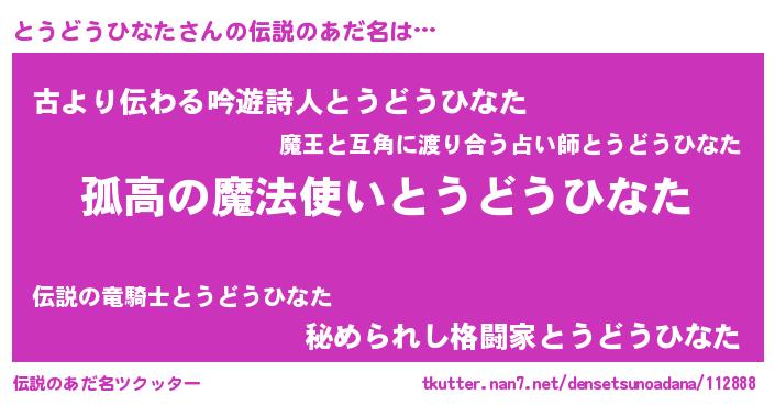 | 意味不明あだ名 | 『住所不定無職とうどうひなた(11歳)』 |