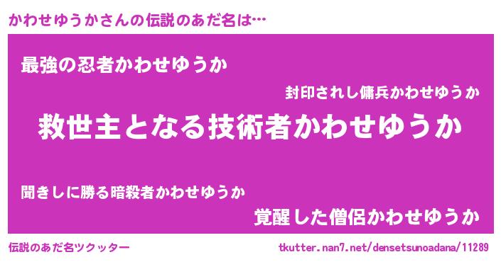 | 男性向けラノベタイトル風あだ名 | 『かわせゆうかに滅ぼされるだけの簡単なお仕事です』 |