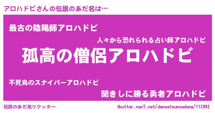 | 女子向けラノベタイトル風あだ名 | 『アロハドビなんてお断りですっ。』 |