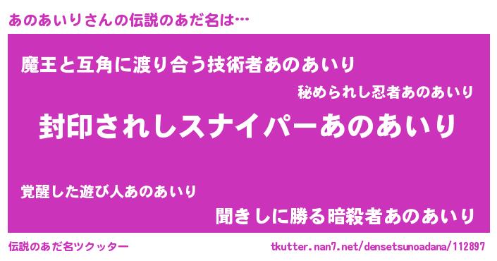 | ヒーロー風カッコイイあだ名 | 『スーパーアノアイリ』『ネオアノアイリ』 |