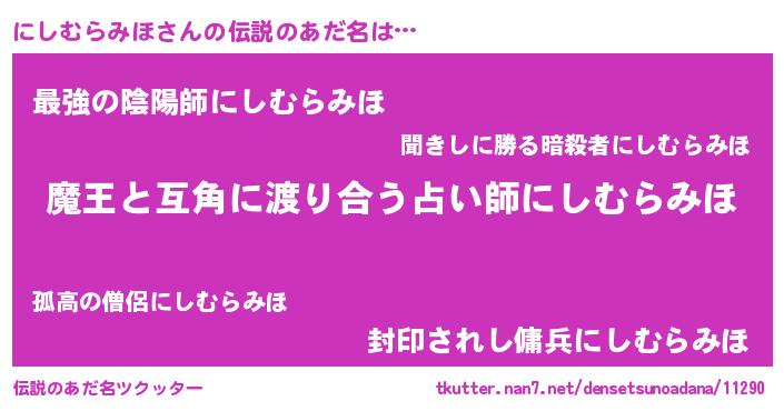 | 男性向けラノベタイトル風あだ名 | 『この素晴らしい世界ににしむらみほを!』 |