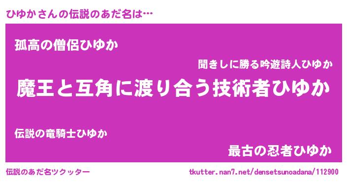 | 女子向けラノベタイトル風あだ名 | 『闇のひゆか』『ひゆか夫妻のなれそめ』 |