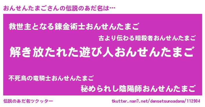 | 意味不明あだ名 | 『住所不定無職おんせんたまご(89歳)』 |
