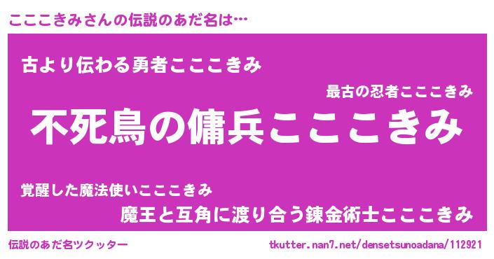 | ヒーロー風カッコイイあだ名 | 『スーパーコココキミ』『仮面ココダー』 |