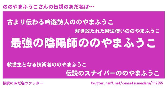 | 意味不明あだ名 | 『住所不定無職ののやまふうこ(93歳)』 |