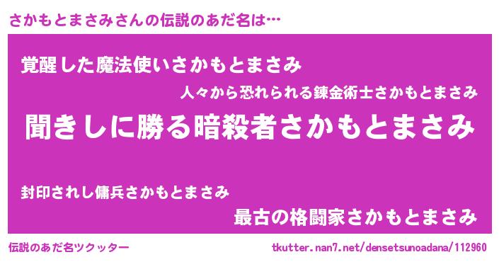 | 意味不明あだ名 | 『永久保存さかもとまさみ』 |