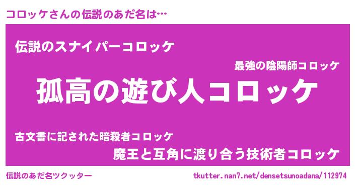 | 意味不明あだ名 | 『住所不定無職コロッケ(81歳)』 |
