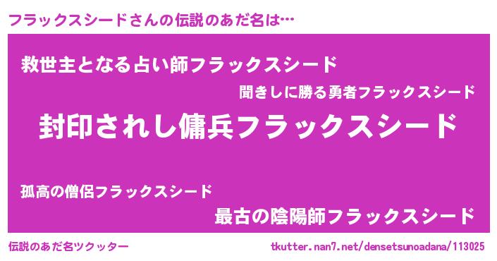| 意味不明あだ名 | 『住所不定無職フラックスシード(39歳)』 |