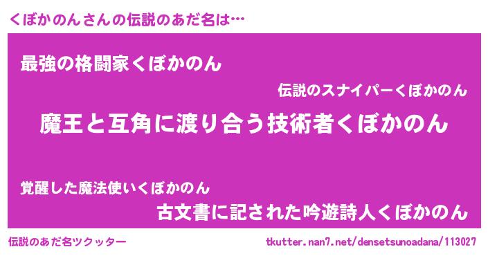 | 女子向けラノベタイトル風あだ名 | 『くぼかのん恋絵巻』 |