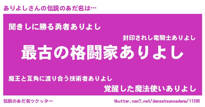 | 意味不明あだ名 | 『ありよしフォーエバー』『自称ありよし』 |