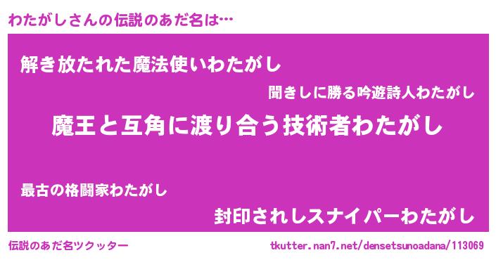 | ヒーロー風カッコイイあだ名 | 『慈愛の使者わたがし』『幻影騎士ワタ』 |