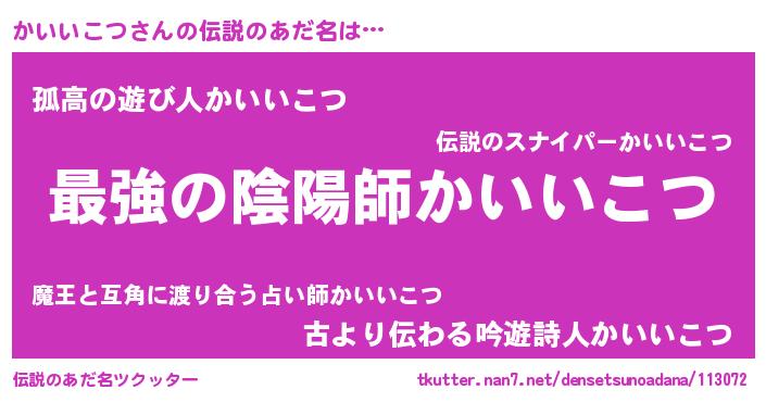 | 男性向けラノベタイトル風あだ名 | 『かいいこつに滅ぼされるだけの簡単なお仕事です』 |