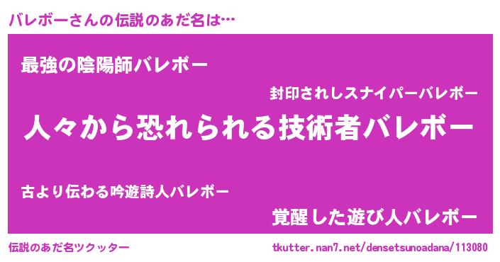 | 男性向けラノベタイトル風あだ名 | 『バレボースレイヤー』 |