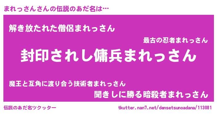 | 欧米人風あだ名 | 『アンジェラ・まれっさん』 |