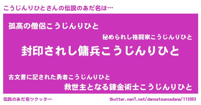 | 男性向けラノベタイトル風あだ名 | 『コウジンリヒトアートオンライン』 |