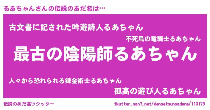 | 意味不明あだ名 | 『自称るあちゃん』『永久保存るあちゃん』 |