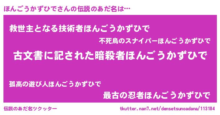 | 意味不明あだ名 | 『住所不定無職ほんごうかずひで(53歳)』 |