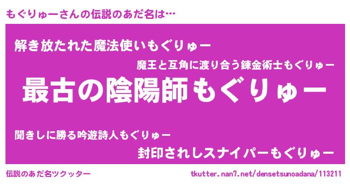 | ヒーロー風カッコイイあだ名 | 『ウルトラもぐりゅーマン』 |