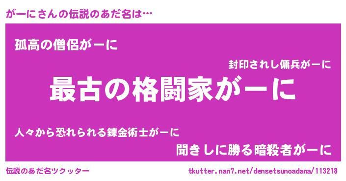 | ヒーロー風カッコイイあだ名 | 『ウルトラがーにマン』『幻影騎士ガー』 |