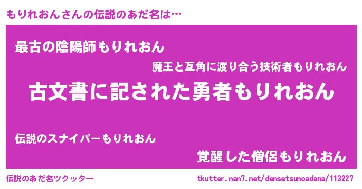| 意味不明あだ名 | 『永久保存もりれおん』 |