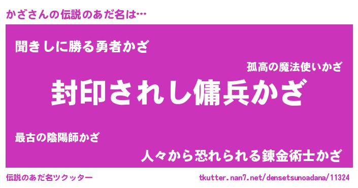 | 男性向けラノベタイトル風あだ名 | 『かざに滅ぼされるだけの簡単なお仕事です』 |