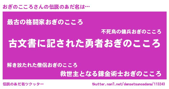 | 意味不明あだ名 | 『永久保存おぎのこころ』 |