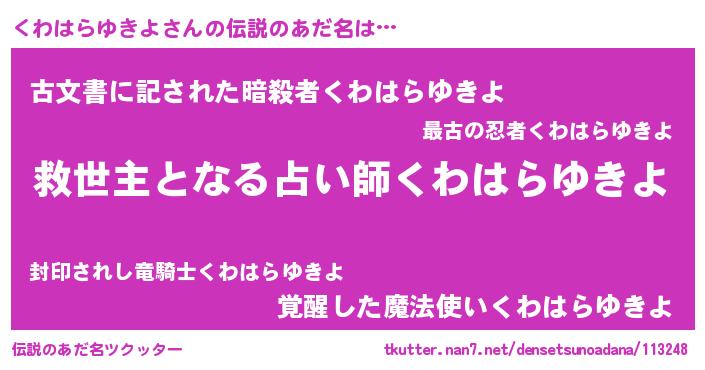 | ヘコむあだ名 | 『くわはらゆきよ(笑)』『くわっぺ』 |