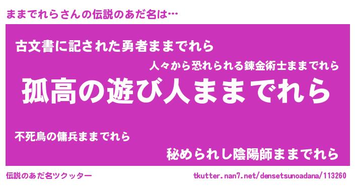| 意味不明あだ名 | 『自称ままでれら』『永久保存ままでれら』 |
