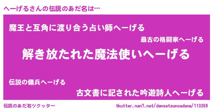 | 胡散臭い通販商品みたいなあだ名 | 『テレビで話題の高麗人参…その名も「へーげる」』 |