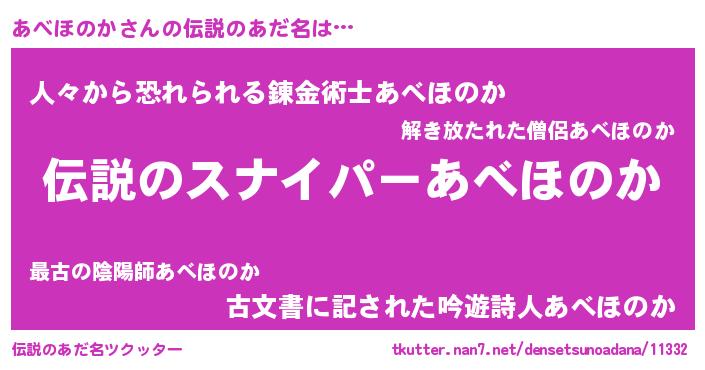 | 女子向けラノベタイトル風あだ名 | 『あべほのかなんてお断りですっ。』 |