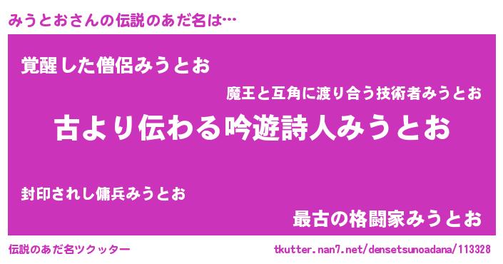 | 意味不明あだ名 | 『たけのこ科みうとお属』 |