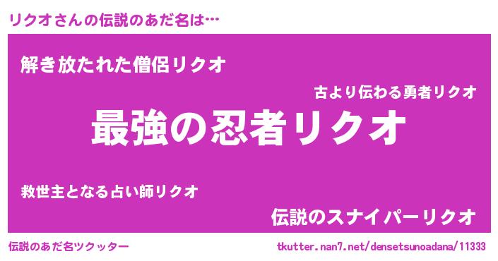 | ヒーロー風カッコイイあだ名 | 『ウルトラリクオマン』『暗黒騎士リク』 |