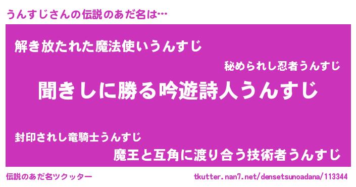 | 意味不明あだ名 | 『住所不定無職うんすじ(6歳)』 |