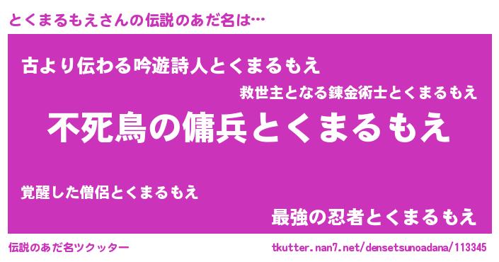 | 意味不明あだ名 | 『自称とくまるもえ』 |