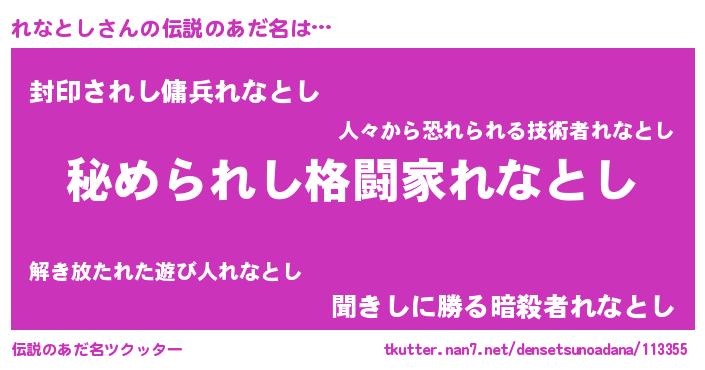 | ヒーロー風カッコイイあだ名 | 『ウルトラれなとしマン』『ネオレナトシ』 |