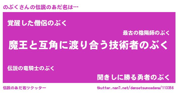 | 男性向けラノベタイトル風あだ名 | 『魔弾の王とのぶく』『ノブクスレイヤー』 |