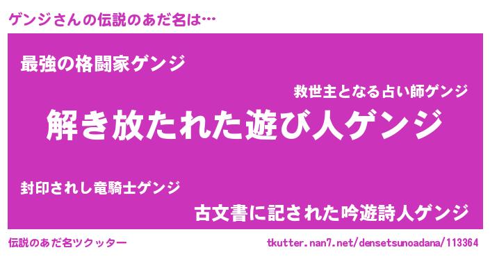 | 男性向けラノベタイトル風あだ名 | 『転生したらゲンジだった件』 |