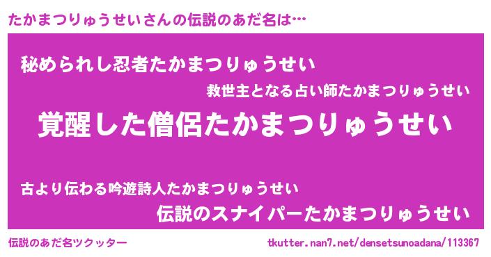 | ポケモン風あだ名 | 『ヒタカマツリュウセイ』『タカゴンZ』 |