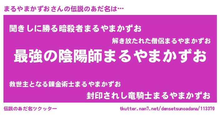 | 男性向けラノベタイトル風あだ名 | 『まるやまかずお~年齢イコール彼女いない歴の魔法使い~』 |