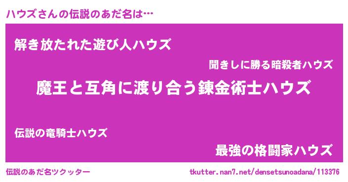 | ヒーロー風カッコイイあだ名 | 『慈愛の使者ハウズ』『仮面ハウダー』 |