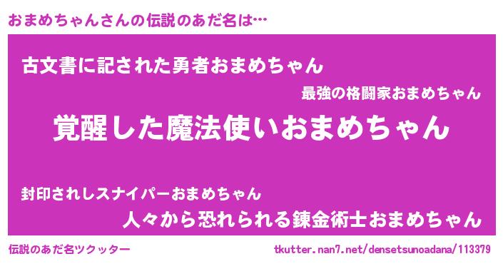 | ヒーロー風カッコイイあだ名 | 『幻影騎士オマ』『ネオオマメチャン』 |
