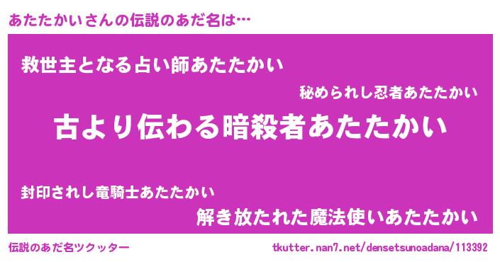 | 胡散臭い通販商品みたいなあだ名 | 『来世でも幸せになれる健康食品…その名も「あたたかい」』 |