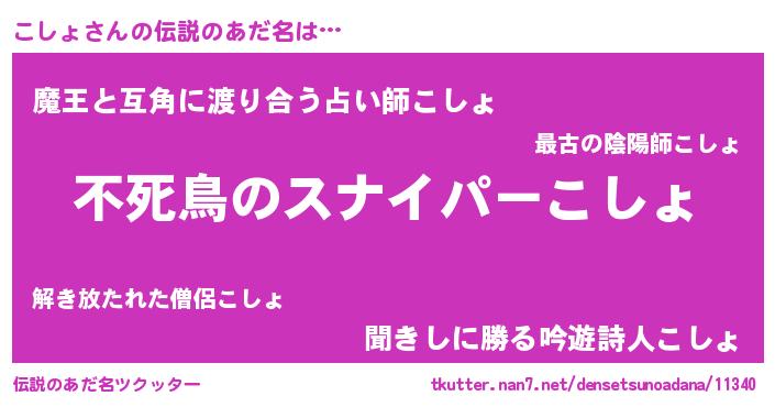 | 意味不明あだ名 | 『自称こしょ』『ペロリンこしょ』 |