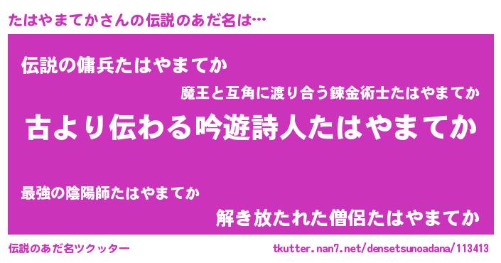 | ヒーロー風カッコイイあだ名 | 『ネオタハヤマテカ』『仮面タハダー』 |