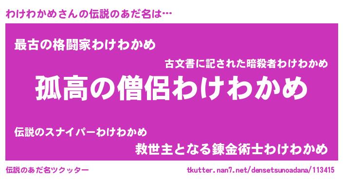 | 男性向けラノベタイトル風あだ名 | 『ダンジョンにわけわかめを求めるのは間違っているだろうか』 |